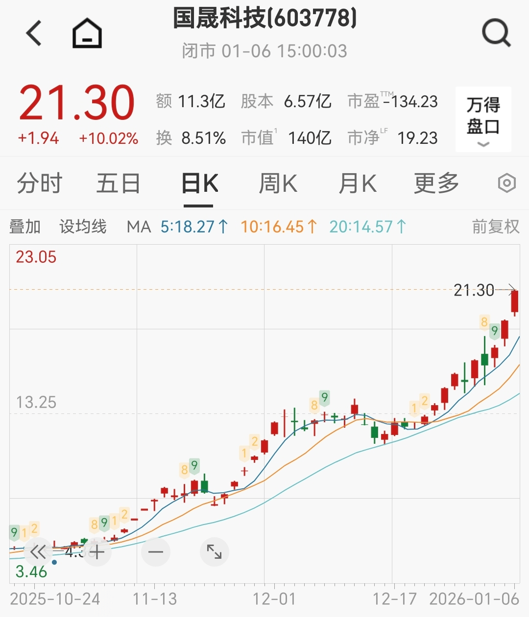 国晟科技的前身为乾景园林,是国内生态园林从板上市第一股。2022年11月,该公司以约1。54亿元现金向国晟能源收购了7家子公司股权,入局光伏范畴,并构成了“园林+光伏”的双从停业务模式。2025年11月25日晚间,该公司发布通知布告称拟以2。406亿元现金收购铜陵市孚悦科技无限公司(下称孚悦科技)100%股权,结构高细密度锂电池布局件赛道。稍早前,2025年10月15日,国晟科技发布对外投资通知布告称,其拟通过二级控股子公司安徽国晟新能源科技无限公司以2。3亿元向国晟全球新能源(铁岭)无限公司(下称铁岭全球)进行增资。而标的公司做为投资从体,将正在铁岭扶植年产10GWh固态电池财产链AI智能制制项目。盘面上,截至今日收盘,国晟科技报收21。30元/股,总市值140亿元,公司股价自2025年10月13日走强以来,期间累计涨幅超512%。